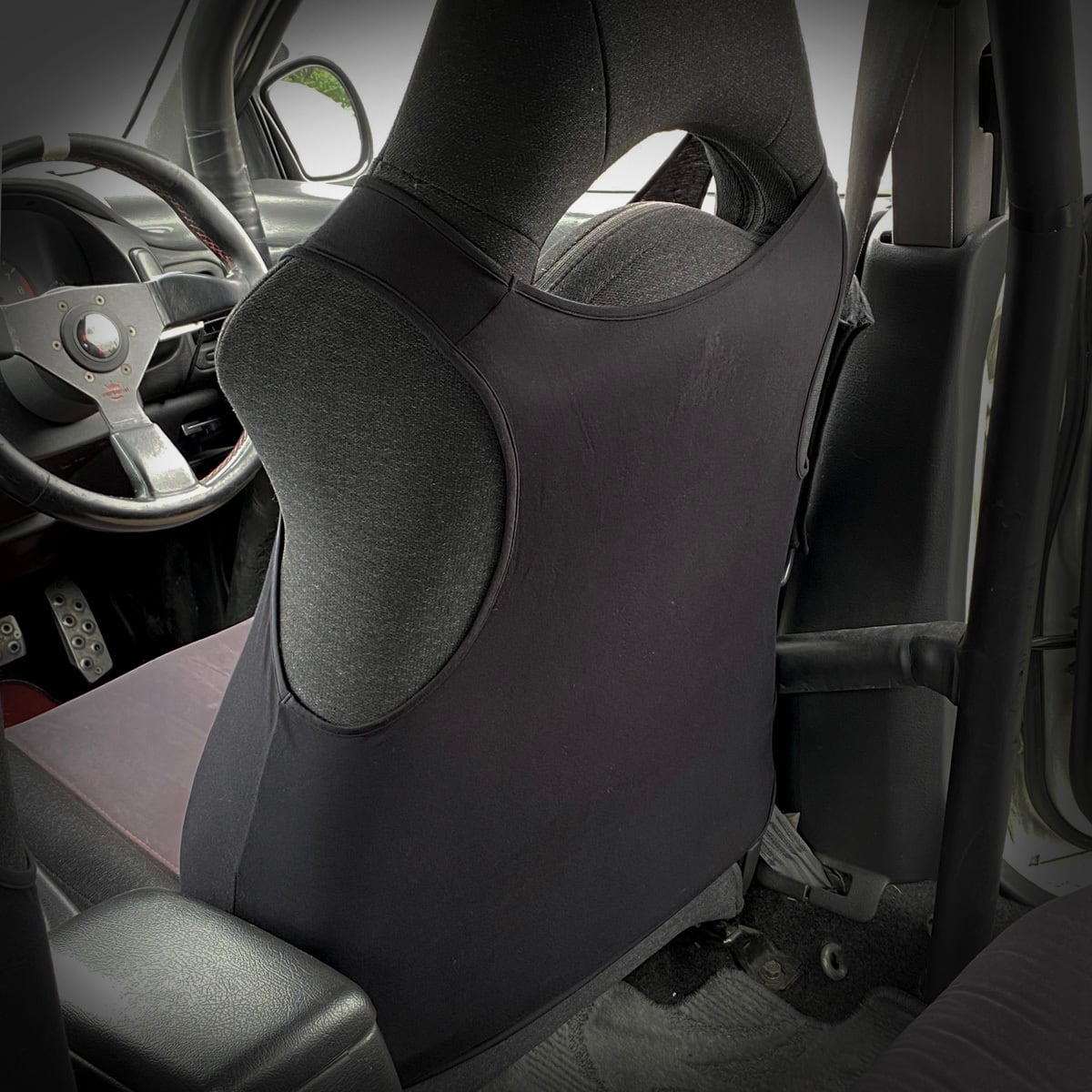 GC/GF系インプレッサ純正バケットシートの乗り降りの際に擦れてしまうサイドサポート部の保護と、傷んでしまった箇所を隠すことを目的としたシートカバー、伸縮性と耐候性、耐摩耗性を高めて再登場しました。