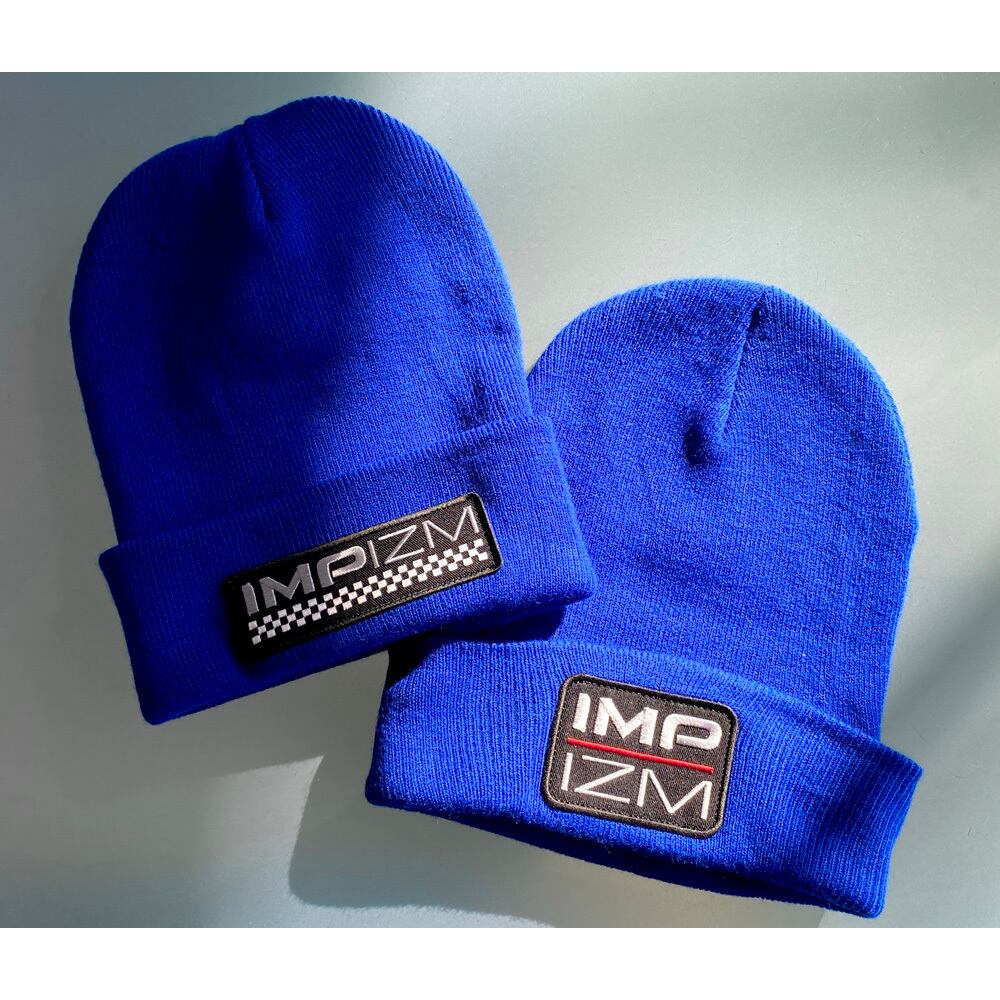 【IMPIZM】ニットキャップ/ブルー/レッドラインロゴ(刺繍)